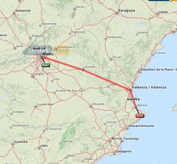 Tiempo de viaje del AVE de Madrid a Gandía